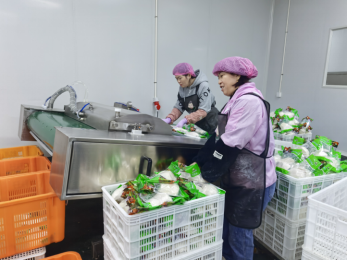图2:在“芋头王子”公司的自动化包装生产线上,工人们正忙碌作业